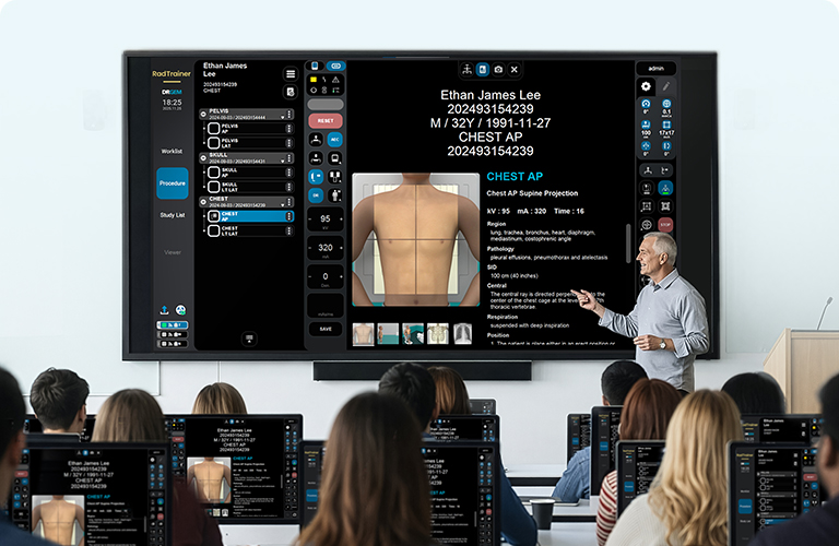 A radiography training solution that enables students to learn the full X-ray room workflow safely, without X-ray exposure.