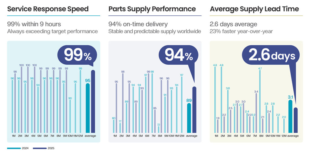 平均リードタイムは2.6日で、前年比23%の改善となった。これは、依頼から出荷までの全プロセスにおける効率化を反映している。.
