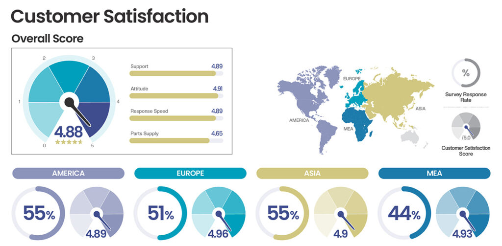 2025年、DRGEMはグローバル顧客サービス満足度調査を実施した。その目的は、全地域における顧客体験とサービス・パフォーマンスを包括的に理解することであった。さらに、将来のサービス改善に向けて、顧客中心の明確な方向性を定めることも目的とした。この調査には4,833通の招待状のうち2,623通の回答が寄せられ、54%という極めて高い参加率を達成した。この結果は、強い関与だけでなく、世界中の顧客がDRGEMに寄せる深い信頼を反映している。.