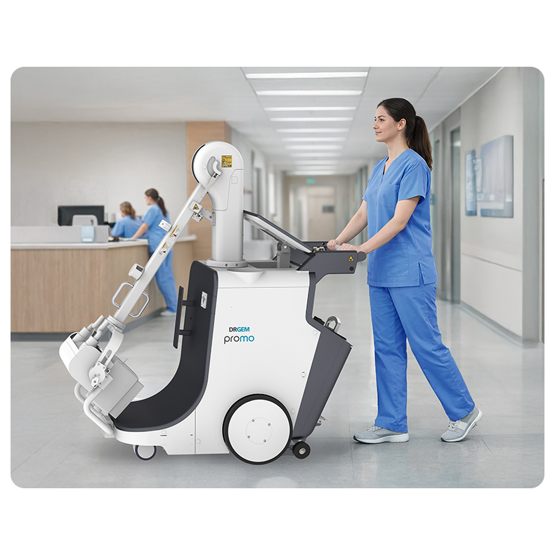 PROMOは、先進のイメージング技術とユーザーフレンドリーなデザインを融合し、モバイルX線イメージングにおいて卓越した性能を発揮します。PROMOは、180°回転するカラムと最高の焦点位置を特徴とし、多様な臨床現場で正確な位置合わせと優れた画像品質を保証します。直感的なインターフェース、強力な40kWコンデンサジェネレータ、RISやPACSとのシームレスな接続性により、PROMOはワークフローの効率を高め、必要な場所で信頼性の高い診断結果を提供します。