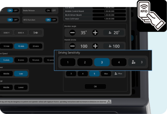 RAYMO alerts the operator with gentle haptic feedback as the system approaches the user-defined SID target. This tactile guidance helps ensure precise alignment without relying solely on the display, enabling faster and more confident bedside positioning.