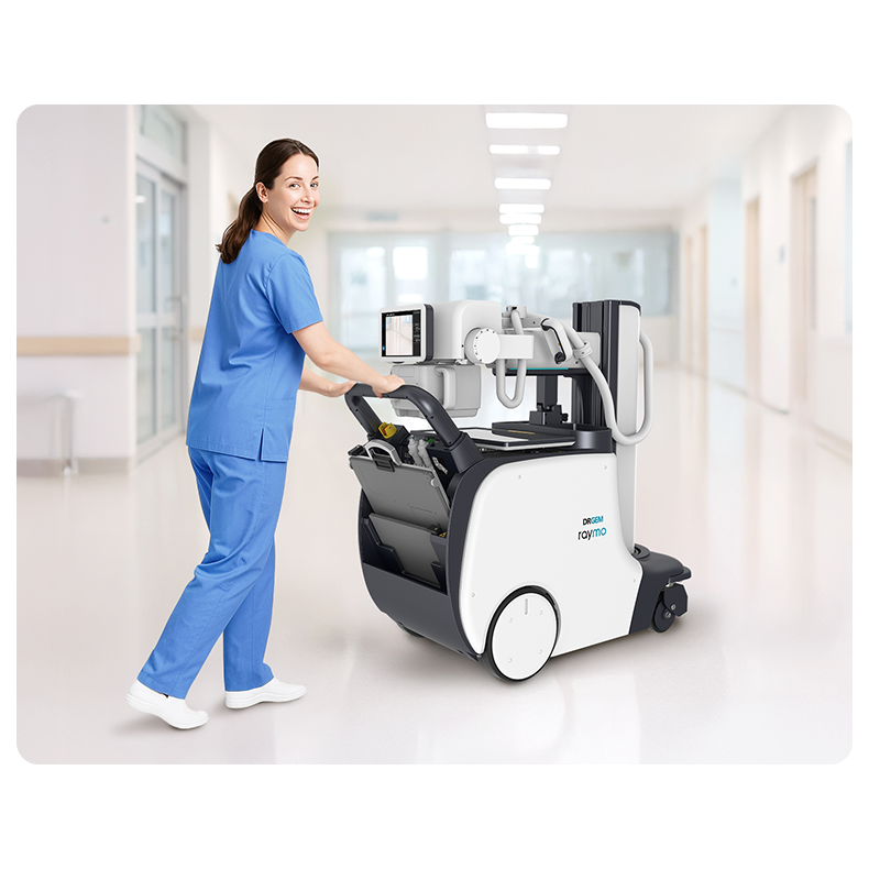 RAYMO features a compact design with 20 percent less volume compared to previous mobile systems, making it easier to move through tight clinical spaces. Its reduced size and optimized balance support smoother navigation and faster positioning while maintaining the full performance needed for precise, high-quality imaging.