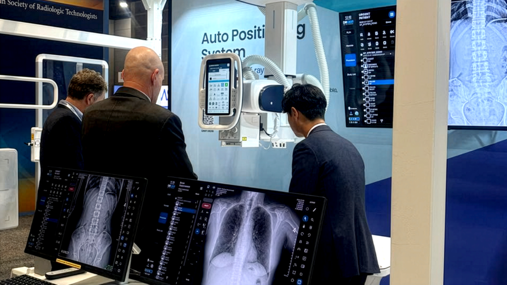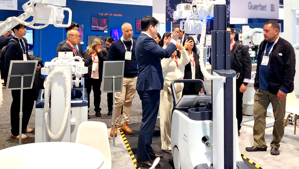 RAYMO 的紧凑设计给许多参观者留下了深刻印象。其流畅的操控性和基于人工智能的自动曝光控制也备受关注。即使在有限的空间内,这些功能也能确保高分辨率成像和精确操作。与此同时,参观者还在 RadTrainer 区亲身体验了无辐射的放射成像模拟,为他们提供了一个逼真的临床培训环境。.